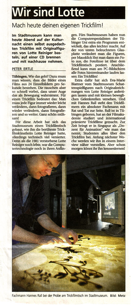Lotte Reiniger im Tübinger Stadtmuseum" Broadcast