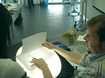 A guided tour through the exhibition "Animated Films from Germany" was introducing the 25 participants, all artists from animation and related fields, to the art form. After that a comprehensive one day "crash course" in a very hands own approach allowed them to test their own animation skills through drawn animation exercises. Immediate line-testing was enabled by our friends from ANIMAGINE and their fabulously user friendly software.